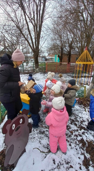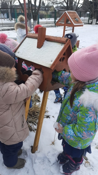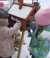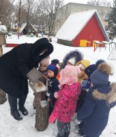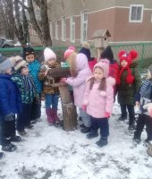 В рамках тематической недели была проведена акция «Покормите птиц зимой». В ходе проведения акций дети поняли, что они делают хорошее дело – помогают выжить птицам в самое трудное время года. Акция прошла под девизом: «Трудно птицам зимовать, надо птицам помогать».