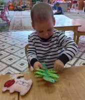 У малыша третьего года жизни мелкая моторика развивается быстрыми темпами, только она уже связана с формированием познавательных навыков. Ребенок предпринимает определенные действия, чтобы получить новую информацию: он бросает, трогает, ломает игрушки и тем самым их изучает. Когда он лепит, вырезает, рисует, застегивает пуговицы под руководством взрослого, он также учится, получает новые знания.