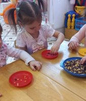 В своей работе я использую комплекс игр и упражнений по развитию мелкой моторики, что обеспечивает возможность саморазвития ребенка, который из всех предложенных ему мероприятий выбирает ту деятельность, которая отвечает его склонностям и интересам. Например, манкография (рисование манкой или на самой манке) - занятие для детей любого возраста. Помимо обычного хаотичного рисования и свободной игры для ребенка можно еще вместе с мамой рисовать цветочки, солнышко и лучики, тучки и дождик, домик и заборчик и т.д. Игры - шнуровки - развивают пространственную ориентировку, внимание, формируют навыки шнуровки, развивают творческие способности, способствуют развитию точности глазомера, последовательности действий.