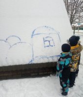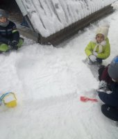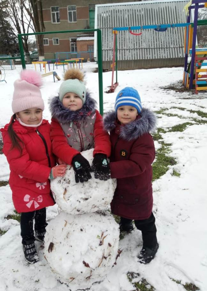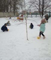 И вот долгожданный снег. Чистый, искрящий, хрустящий. Если снег - значит скучать на улице не придется! Придется бегать, прыгать, строить, прятаться, кататься, да ещё много чего сделать. Ребята подготовительной группы с огромной радостью рассматривали красивые в снежном наряде кустарники, сказочные деревья. Слепили снежную бабу, мальчишки построили крепость и радовались зимним играм.