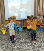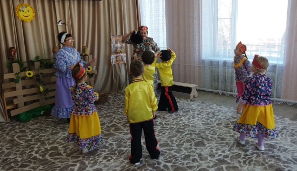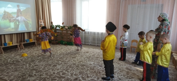 Дети подготовительной группы «Непоседы» с задором выполняли танцевальные движения под казачью народную музыку. Воспитанники средней группы «Звездочки» весело, дружно сыграли на ложках мелодию казачьей плясовой.
