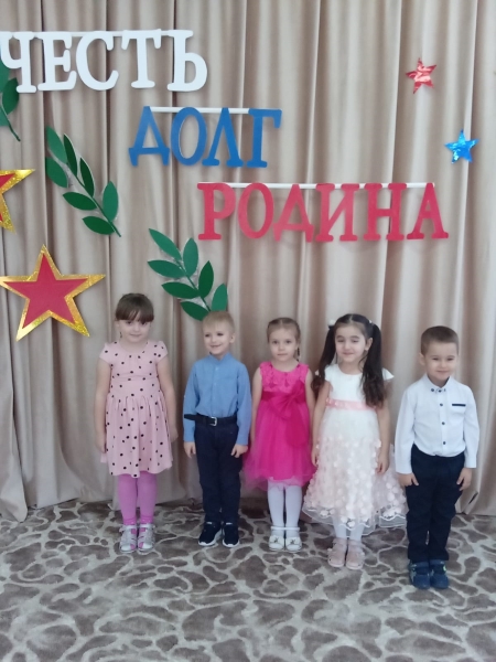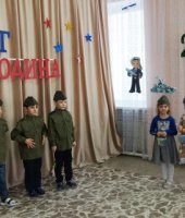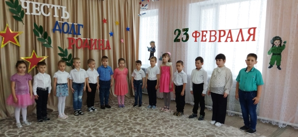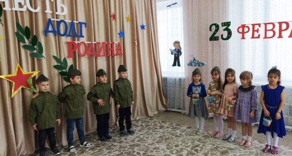 На празднике ребята прочитали стихи, исполнили песни, посвящённые защитникам нашей Родины. Ребята средней группы «Звездочки» в подарок для пап исполнили песню «Папа может быть кем угодно, только мамой не может быть…», в старшей группе «Радуга» дети исполнили песню «Будем солдатами», воспитанники подготовительной группы «Непоседы» станцевали зажигательный танец юных бойцов и с задором исполнили частушки.