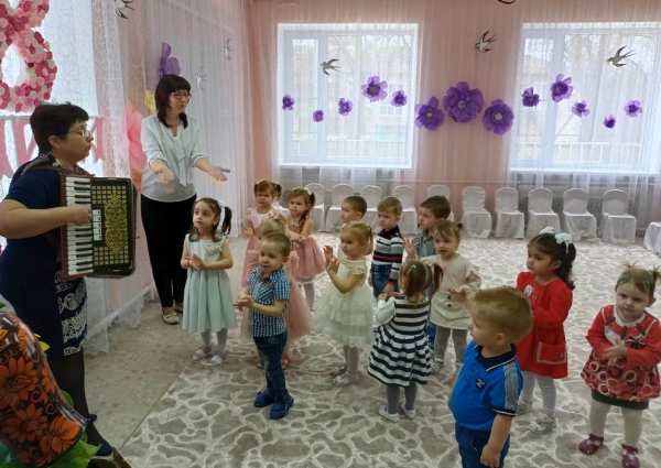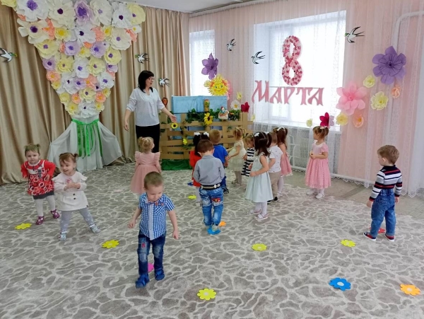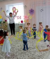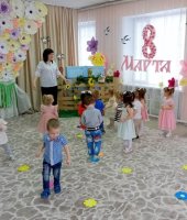 3 марта в музыкальном зале состоялся праздник, посвященный международному женскому дню. Детишки с удовольствием принимали участие в празднике: спели песню «Маме песенку пою», встретили Весну - красну (в роли Улевская Н.Г.) весенней пляской, в танце «Маленькие лучики» помогли солнышку согреть землю, что бы цветочки распустились, играли а подвижную игру «Соберём букет для бабушки», а также ходили в гости к бабушке Варварушки (в роли Ткачёва М.В.)поздравить её с праздником весны, с Женским днем. Пели, песенку как пирожки пекли - «Я пеку-пеку-пеку», танцевали с цветами.