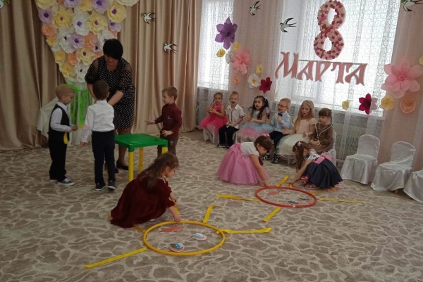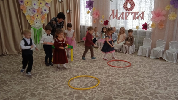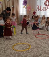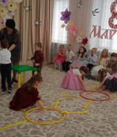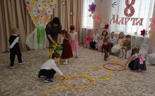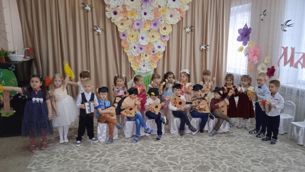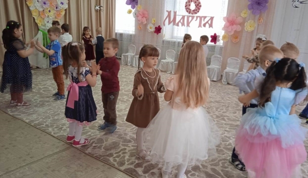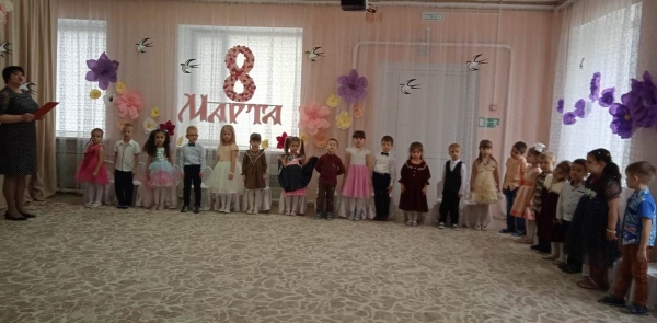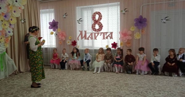 3 марта в средней группе «Звёздочки» состоялся утренник, посвященный прекрасному празднику 8 Марта. На утреннике наши дети рассказывали праздничные стихотворения, пели красивые песенки про маму, танцевали парную польку и участвовали в различных соревнованиях. Сюрпризным моментом для детей был приход весны (в роли Улевская Н.Г.). Дети отгадывали загадки, водили хоровод и пели песни о весне. С радостью поиграли в весёлые игры: «Собери солнышко», «Помоги бабушке собрать клубочки», «Ухажёры», «Самый ловкий», где проявили смекалку, ловкость, быстроту, сообразительность. Особенно было ярким выступление весёлого оркестра с номером «Для милой бабушки», где дети проявили артистизм и показали своё умениями играть на музыкальных инструментах.
