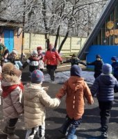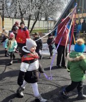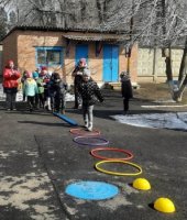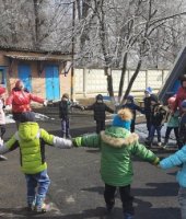 С восторгом ребята прогоняли Зимушку-зиму (в роли учитель-логопед Гончарова С.С.) и с радостью встречали Красавицу Весну, (в роли инструктор по физической культуре Улевская Н.Г.), она с ребятами поиграла в игру «Гори, гори ясно» и завела весенний хоровод.
