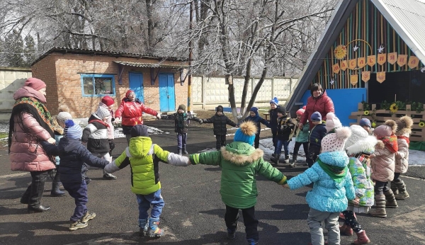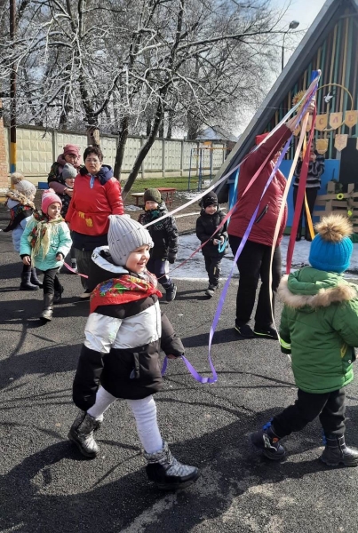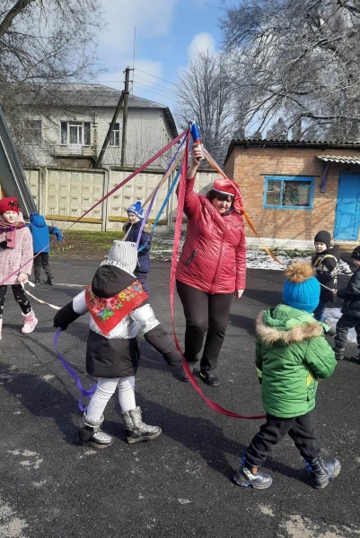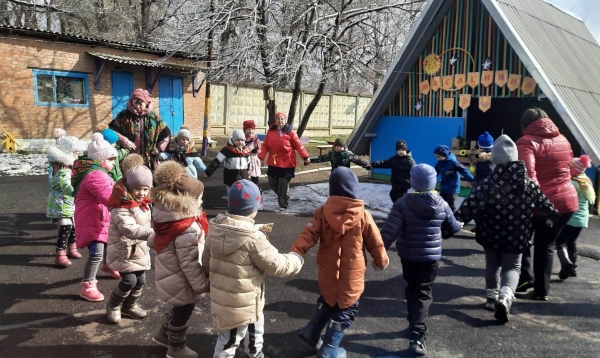 С Масленицей дети играли в игру «Ты катись блинок по кругу» и исполнили русскую народную песню «Блины».