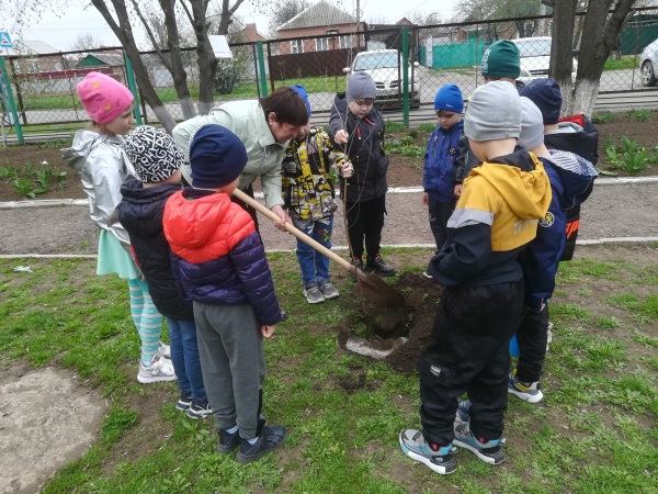 В результате совместной работы педагогов и воспитанников, территория детского сада пополнилась молодыми деревьями, кустарниками и цветами.
