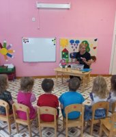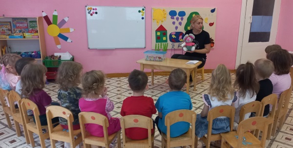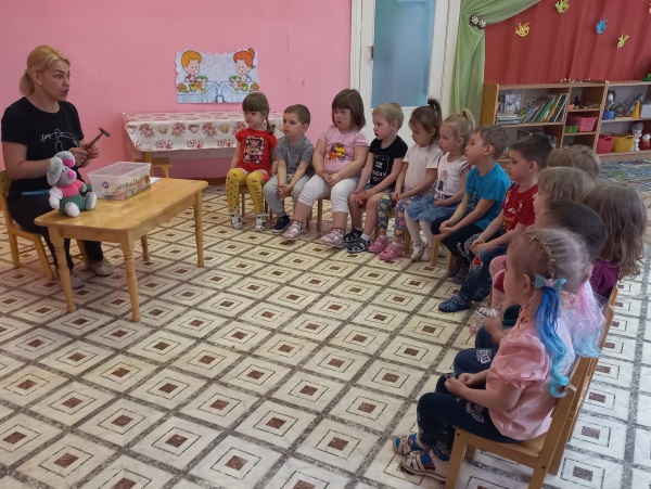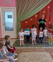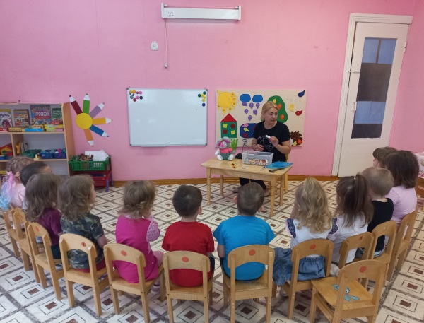 Итогом недели стало занятие по ОБЖ «Опасности вокруг нас». В гости к детям пришёл Степашка со своими игрушками: спички, нож, гвозди, иголки, таблетки. В ходе занятия малыши с помощью воспитателя рассказали Степашке, почему с этими предметами играть опасно. Когда Степашка собрался уходить дети подарили ему безопасные игрушки: мяч и пирамидку.