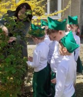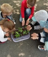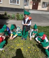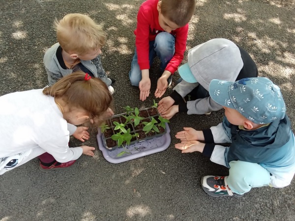 Отряд «Эколята - дошколята» подготовительной группы с воспитателем Жевтяк Н.Н. провели для младших дошкольников акцию «Познаем Природу с Эколятами» и подарили рассаду цветов, которую малыши с воспитателем высадили на клумбу.