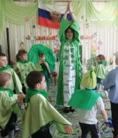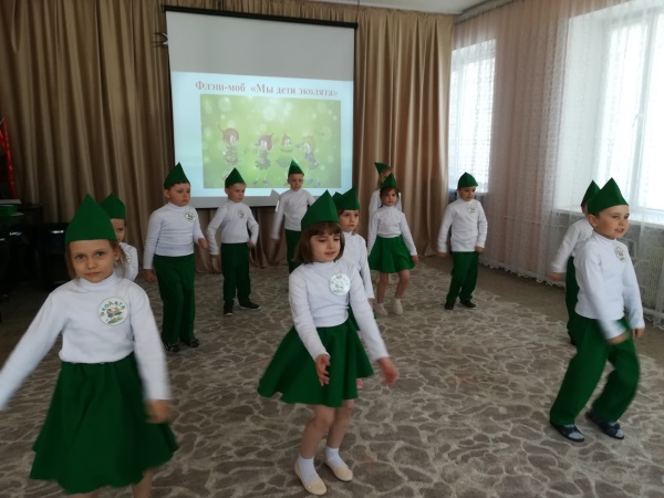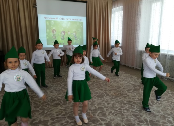 Музыкальный руководитель Ермак Л.В. для ребят старшей группы «Радуга» организовала экологический праздник «Эколята – друзья и защитники природы!». На празднике присутствовали логотип «Эколят» и образов сказочных героев Эколят – друзей и защитников Природы (Умницы, Шалуна, Тихони и Ёлочки). Герои Эколят прислали ребятам письмо с заданиями: «Найди пару», «Назови насекомое»; эстафеты: «Собери мусор», «Укрась планету» и др.. Герои Эколят поздравили ребят с успешным выполнением заданий и отметили, что они готовы вступить в отряд «Эколят». Ребята произнесли клятву «Эколят – дошколят» и закончился прадник Флэш-моб «Мы дети эколята».