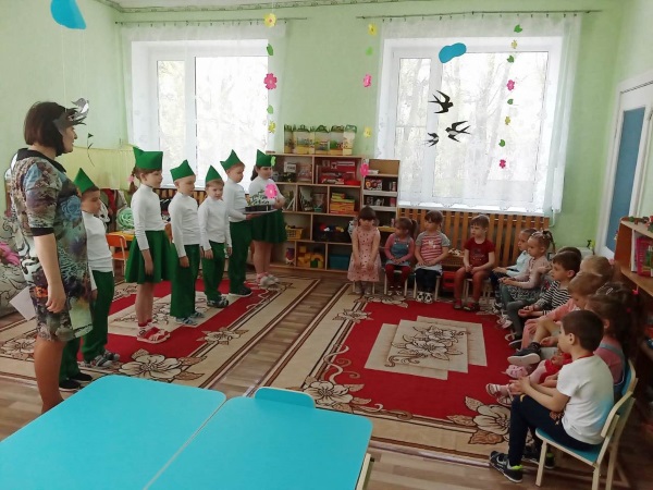 Ребята старшей разновозрастной группы ОСП «Солнышко» с воспитателем Суплотовой В.Н. читали стихи, отгадывали загадки о природе и приняли участие в экологических эстафетах в ходе праздника «Эколят».