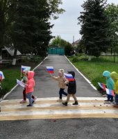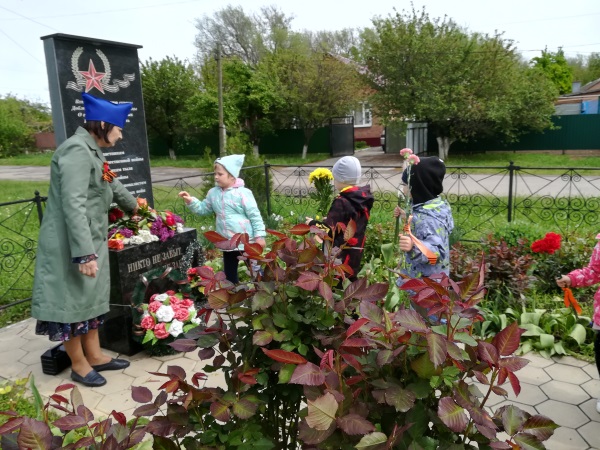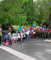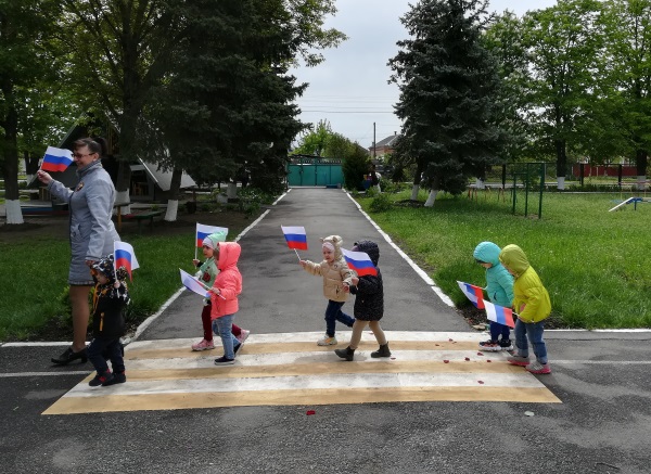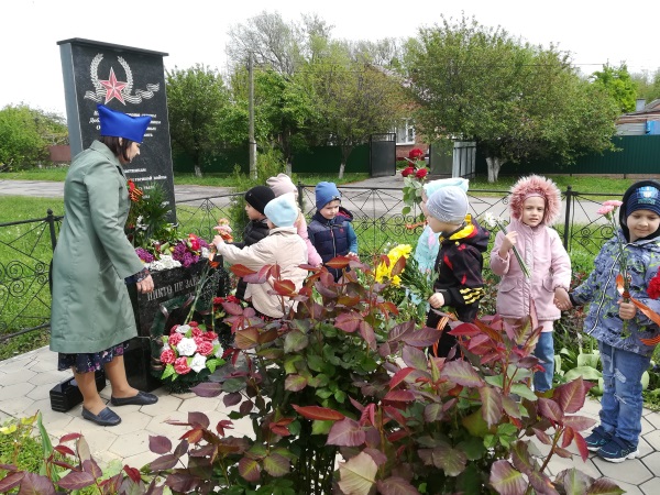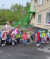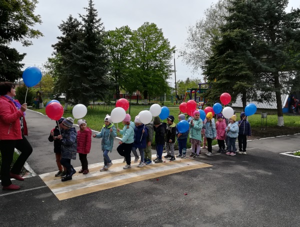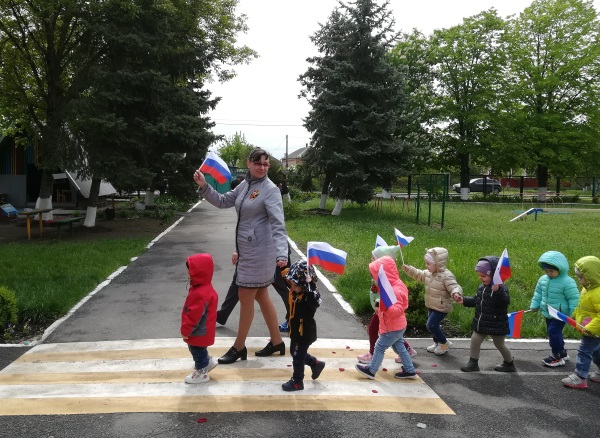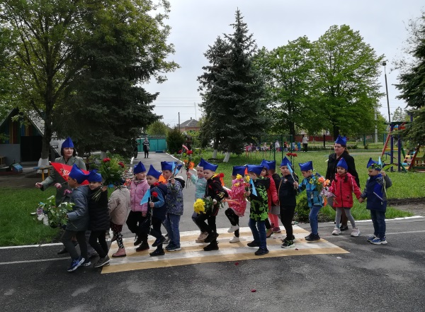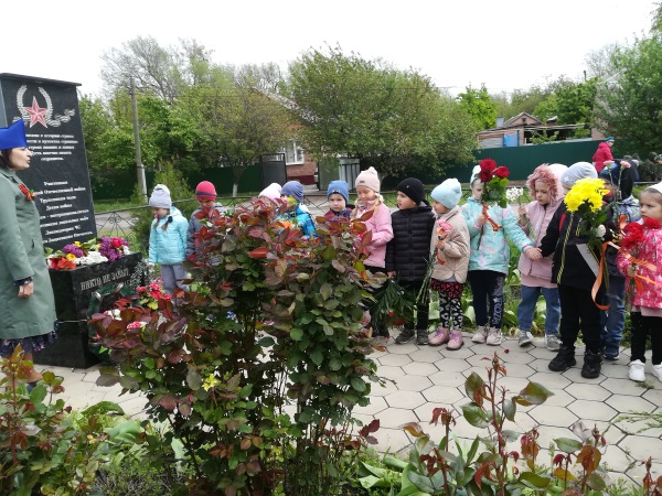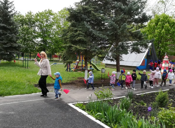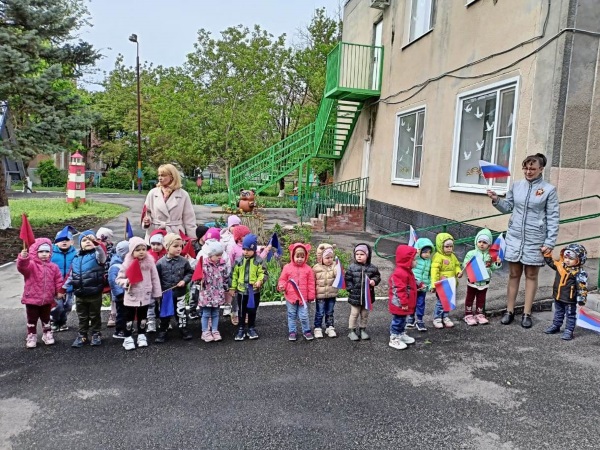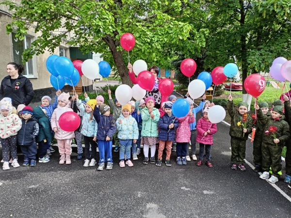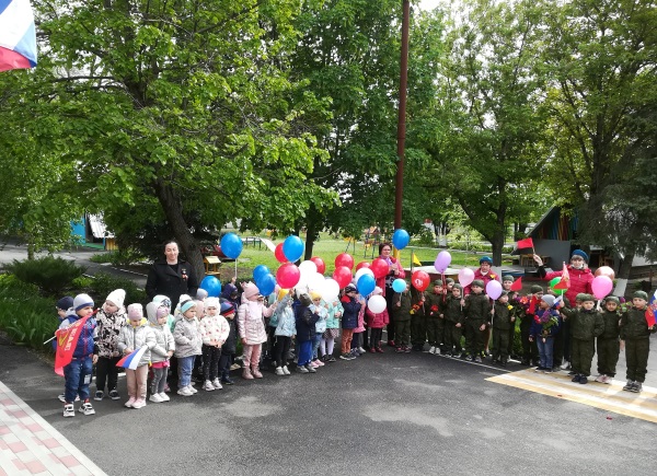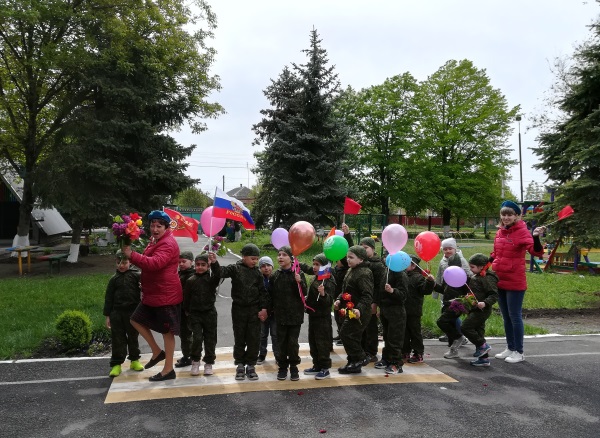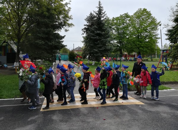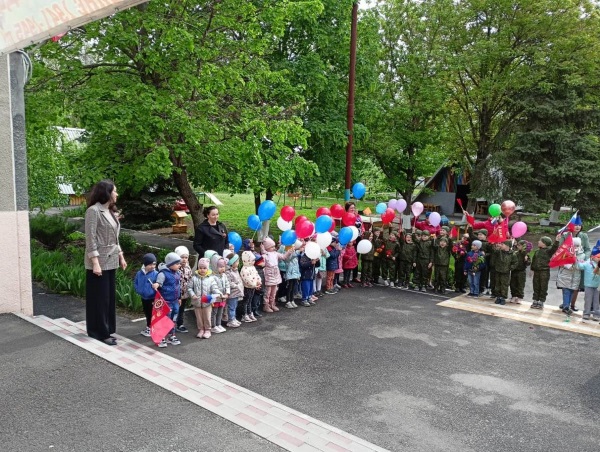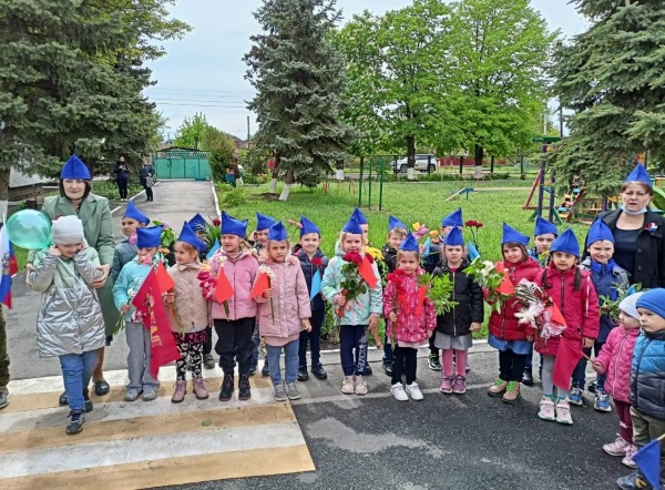 Ребята группы раннего возраста «Малыш», младших групп «Капелька» и «Ромашка», средней группы «Звёздочки», старшей «Радуга» и подготовительной группы «Непоседы» с воспитателями и младшими воспитателями 6 мая приняли участие в параде Победы, посвящённого великому дню Победы в Великой Отечественной Войне организованного в детском саду.