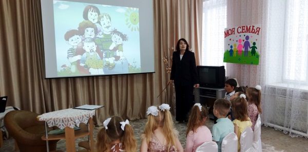 Участники телепередачи – дети и её ведущий воспитатель Наталья Николаевна поприветствовали зрителей передачи – участников МО. В ходе телепередачи её участники поговорили о самом главном, что есть на земле - о семье. Что такое семья и зачем она нужна человеку, а также рассказали небольшие стихи о семье.