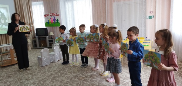 Участники телепередачи с оформленными генеалогическими древами своей семьи вернулись в детский сад.