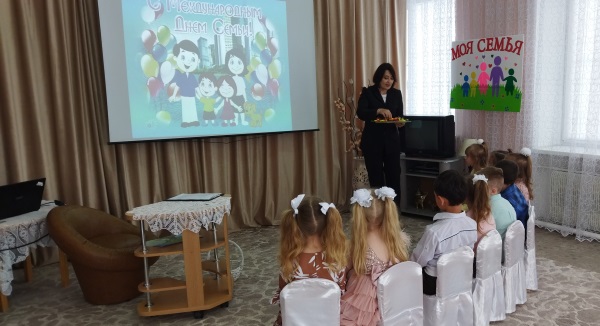 В рамках реализации рабочей программы воспитания и календарного плана к рабочей программе было продемонстрировано открытое мероприятие совместной деятельности, посвящённое международному дню семьи: «Путешествие на телепередачу «Моя семья». В ходе мероприятия воспитатель Жевтяк Н.Н. с воспитанниками старшей группы «Радуга» побывали на телепередаче «Моя семья». В музыкальном зале была оформлена (импровизированная) студия для участников и зрителей.