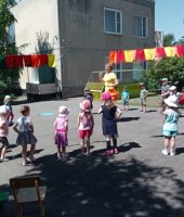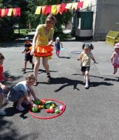 В средних группах «Капельки» и «Ромашка» был проведён спортивный праздник «Спортивные ребята». В гости к детям пришла Капризуля, которая не любила заниматься спортом. Ребята рассказали гостье о важности для здоровья занятий спортом, а затем сделали веселую зарядку. Очень задорно прошла подвижная игра «Если нравиться тебе, то делай так». С большим удовольствием ребята проходили полосу препятствий. А игра «Разложи овощи и фрукты» помогла детям запомнить, что для крепкого здоровья нужны еще и витамины, которые содержаться в овощах и фруктах.