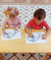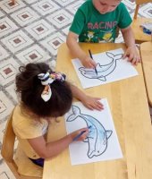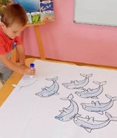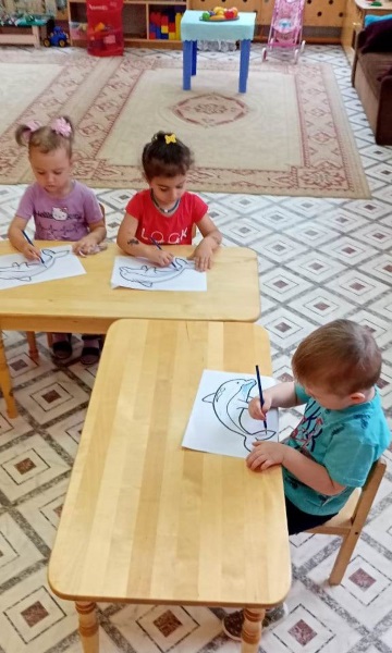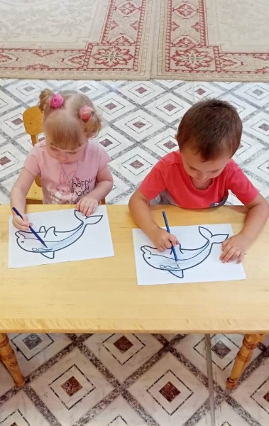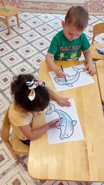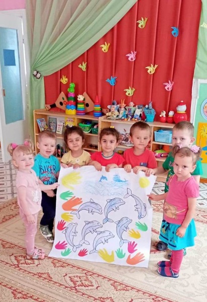 23 июля мировое сообщество отмечает День китов и дельфинов – интереснейших жителей морей и океанов. Вот и в нашем детском саду «Светлячок» сегодняшний день был посвящен теме охраны морских млекопитающих. Воспитанники младшей группы «Непоседы» в этот день узнали много интересного об этих удивительных животных: беседовали о китах и дельфинах, их разновидностях, рассматривали иллюстрации и альбомы с морскими обитателями, разукрасили карандашами весёлого дельфина в ярко синий цвет. Ребятишки играли в подвижную игру «По дну океана», дидактическую игру «Собери дельфина» и все вместе оформили коллективный плакат - «Всемирный день китов и дельфинов 23 июля».