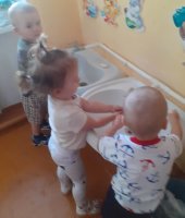 В группе раннего возраста «Ягодки» начался набор детей. Прошел месяц с момента первой встречи воспитанников с новой группой. Жизнь детей проходит в соответствии режима группы. Малыши с интересом знакомятся с новой обстановкой, рассматривают новые игрушки. А мы, воспитатели, учим их игровым действиям с куклой Катей. В процессе игры ребята приобретают новые знания и навыки, познают окружающий мир, учатся общаться друг с другом. Также формируем у малышей культурно-гигиенические навыки, через игровые ситуации: «Научим куклу умываться», «Вкусная каша для Маши», «Научим Мишку вытирать руки». Очень нравится ребятам игры со строительным материалом, игры с песком. Также малыши с увлечением занимаются продуктивной деятельностью: рисуют травку для цыпленка, лепят червячка, зернышки для петушка, колобка. Жизнь ребят проходит интересно и увлекательно.