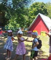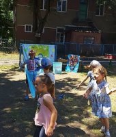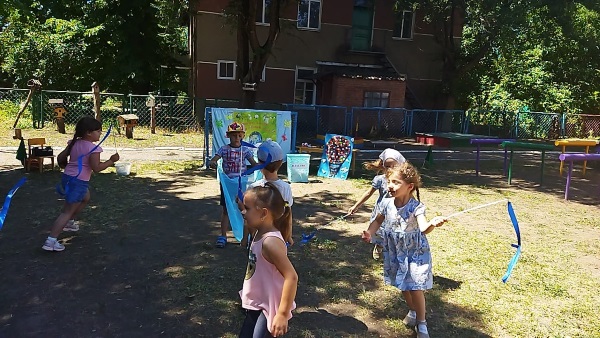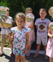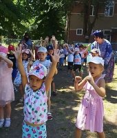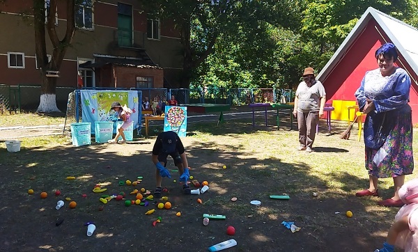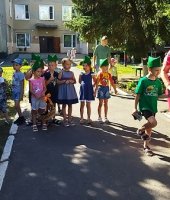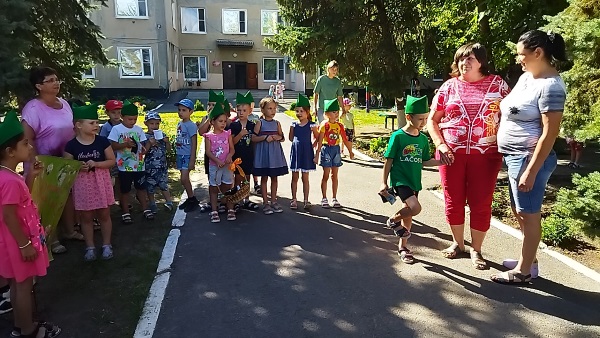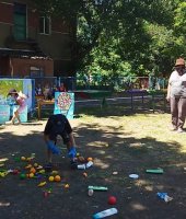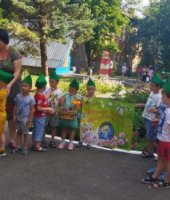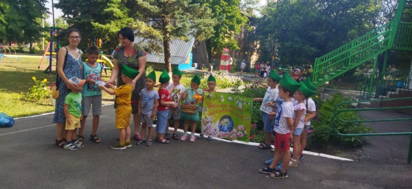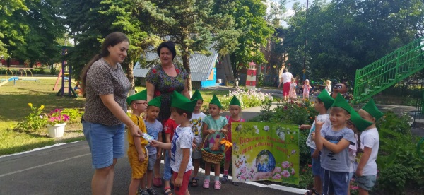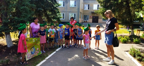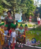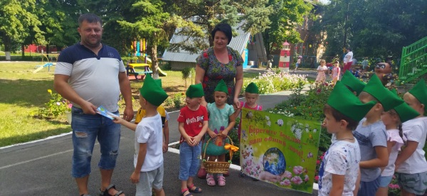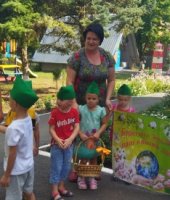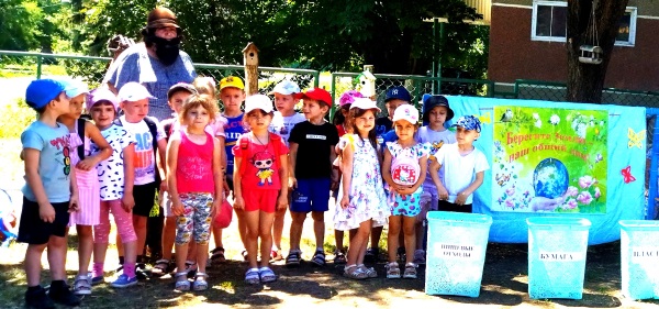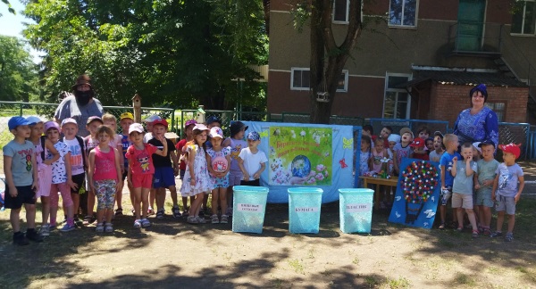 Для закрепления полученных знаний было организованно развлечение «Эколята – помощники природы» с героями Лешим (в роли воспитатель Котченко И.А.) и бабкой Ёжкой (в роли воспитатель Мамай Н.М.). В ходе развлечения проведена игра «Собери мусор правильно» где нужно собрав мусор распределить по назначению. Ребята старшей группы исполнили танец с голубыми лентами и тканью, призывая всех бережному отношению к Земле и экологии.