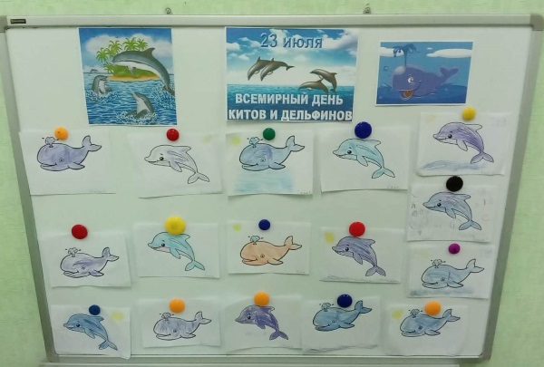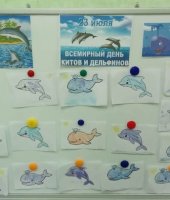 Итоговым мероприятием Всемирного дня китов и дельфинов была творческая выставка - «Давайте сохраним китов и дельфинов вместе!». Ребята увлеченно разукрашивали дельфинчиков и оформили выставку, а также участвовали в развлечении «Морское путешествие».
