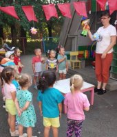 На итоговое мероприятие «С огнём не играй, с огнём не шали» в гости приходил Незнайка и принёс картинки. Ребятишки по картинкам рассказали ему о предметах, из-за которых возникает пожар и показали чем можно тушить пожар в игре «Огнетушители». А ещё показали Незнайке, что при пожаре нужно вызывать пожарных по телефону набрав номер - 01. Также наши юные пожарные поиграли с Незнайкой в игру «Лучший водитель пожарной машины».