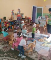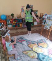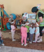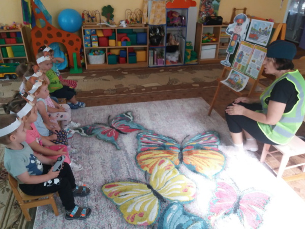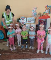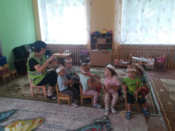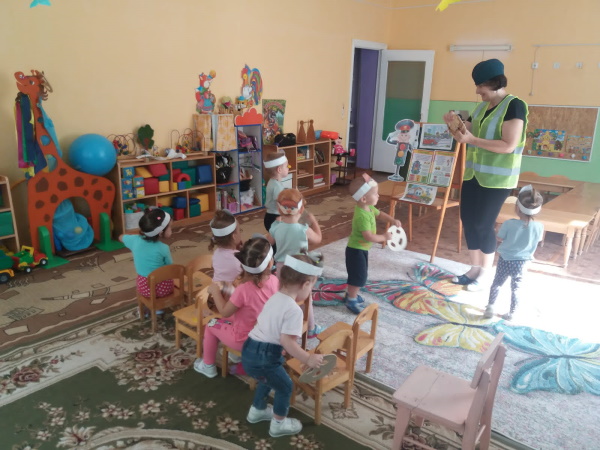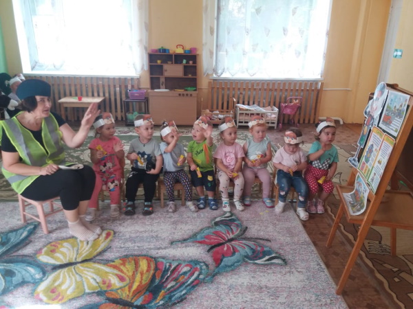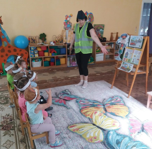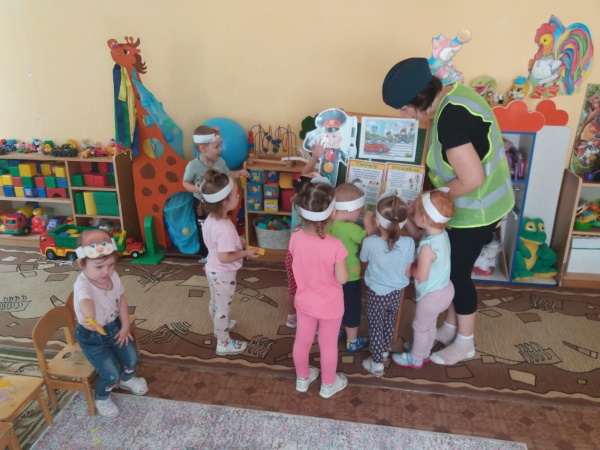 В группе было проведено развлечение «Путешествие по городу». Ребята во время развлечения отправились с инспектором Знайкиным (роль я взяла на себя) по городу на автобусе в гости к Светофорчику. Инспектор Знайкин рассказал ребятам о правилах безопасного движения и поиграл с малышами в игры «Машины», «Воробышки и автомобиль», «Светофор». Малыши рассмотрели макет светофора, познакомились с сигналами светофора.