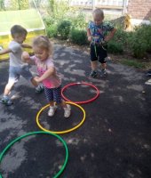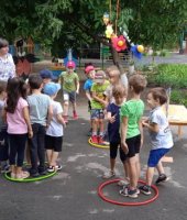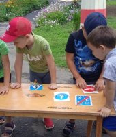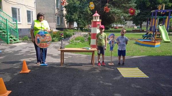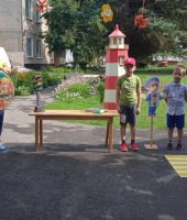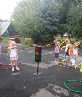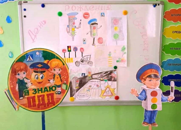 И конечно готовили имениннику подарки: воспитанники младшей группы (воспитатель Михайлова А.А.) нарисовали Светофоры, а подготовительная группа (воспитатель Котченко И.А.) изобразили «Друга - Светофора», также рисовали светофорчики на асфальте, а ещё конструировали его из обручей; разучили поздравительные стихи и песенки про Светофор и ПДД.