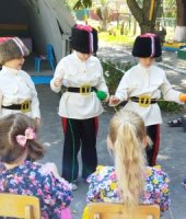 Мы с ребятами побеседовали о том, как проводились казачьи традиционные праздники, узнали про обычаи и традиции казаков. Ребята с увлечением посмотрели видеоролик «Шашка остра, а дух сильней» и презентацию «Обычаи и традиции казаков».