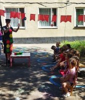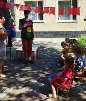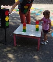 В младшей группе «Непоседы» было проведено развлечение по ПДД «У нас в гостях Светофор». В гостях у ребят были Светофор и Зайка. Роль светофора я взяла на себя, а в роли зайчика – музыкальный руководитель Ермак Л.В.. Герои помогли детям вспомнить правила поведения на дороге. Светофор рассказывал о правилах дорожного движения, поведения на улице. Зайка провёл с детьми музыкальную разминку. Также поиграли с ребятами в дидактическую игру «Это надо знать!», «Из кубиков собери светофор».