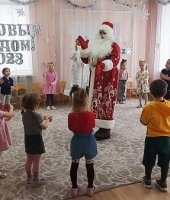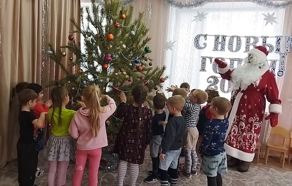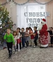 В завершении праздника дети и взрослые попрощались с Ёлочкой до следующего Нового года. Новогодняя красавица, прощаясь с детворой, погасила свои огни… А добрый Дедушка Мороз предложил ребятам старших дошкольных групп «Звездочки» и «Радуга» сложить новогодние игрушки и бусы с ёлочки в волшебный сундучок до следующего года.