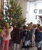 На этом празднике дети всех возрастных групп еще раз заглянули в мир чудес и волшебства. Ребята веселились возле новогодней красавицы, чтобы она запомнила их веселыми, счастливыми и озорными. В ходе развлечения, в грамзаписи звучал голос Ёлочки, которая разговаривала с ребятами. Радости детей не было предела! Дети с удовольствием водили хороводы, пели полюбившиеся новогодние песни, танцевали, играли. А Ёлочка - яркая, блестящая, праздничная, радовала деток сверкающими огоньками.