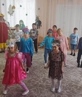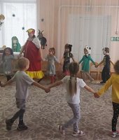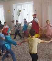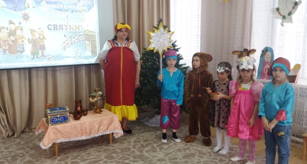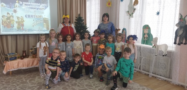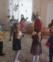 Дети вместе со сказочными героями Солохой (в роли воспитатель Котченко И. А.), Бабой Ягой (в роли воспитатель Мамай Н.М.) и Чертом (в роли инструктор по ФК Улевская Н.Г.) играли, плясали, пели песни, веселились от души!