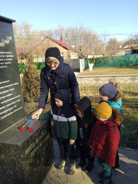В день освобождения станицы Егорлыкской от немецко-фашистских захватчиков 25 января воспитанники средней группы «Капельки» возложили цветы к мемориалу в память о погибших в Великой Отечественной Войне и почтили память минутой молчания.
