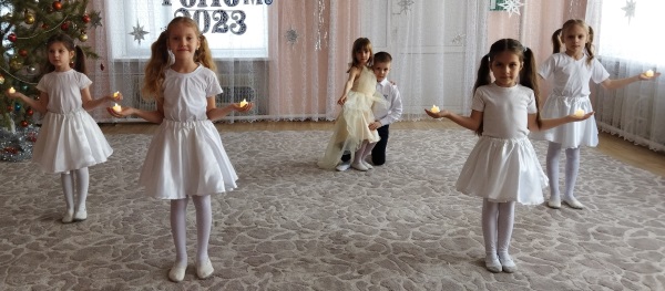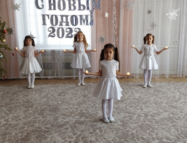 Реализуя план проекта по музыкальному развитию «Танцевальный калейдоскоп» мы с ребятами подготовительной группы «Радуга», разучили танцевальную композицию «Зимняя фантазия», с использованием светодиодных свечей, которые способствовали созданию волшебной, завораживающей атмосферы. На новогоднем утреннике состоялась презентация танцевальной композиции «Зимняя фантазия». В кульминации танца звучит новогодняя мелодия, под которую воспитанники Марухно Максим и Кошурникова Мария исполнили вальс.