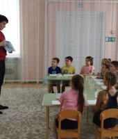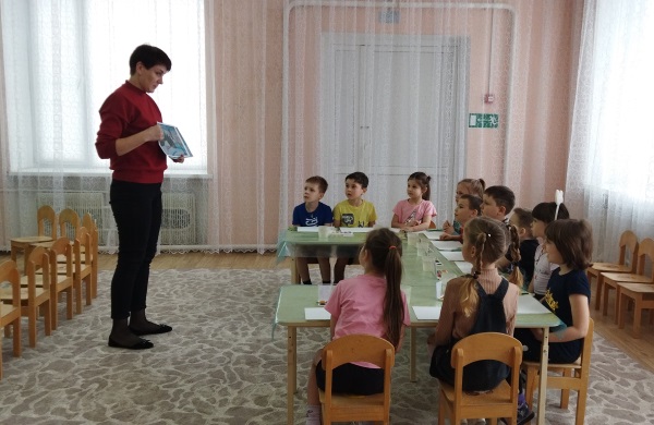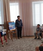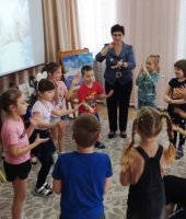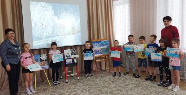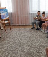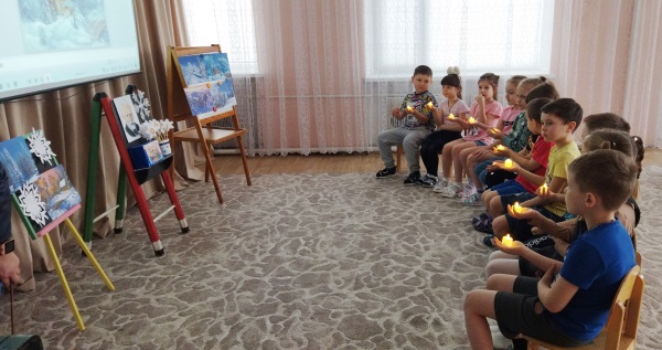 После просмотра с детьми провела беседу по анализу музыки из видеоролика, о средствах музыкальной выразительности, использованной композитором, предложила им переместиться в следующий зал салона, где детей встречала педагог - мастер по ИЗО Людмила Александровна.