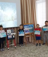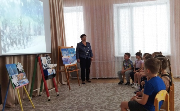 Она с ребятами обсудила изображения «Зимнего пейзажа», его расположение, использование цветов, оттенков красок.