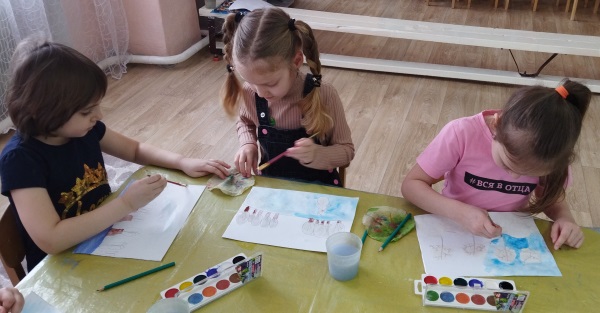 Ребята приступили к выполнению работы, а музыкальное произведение П.И. Чайковского звучало на протяжении всей творческой деятельности ребят.