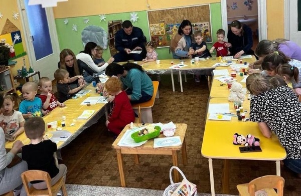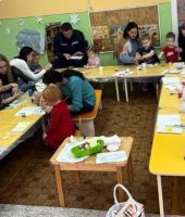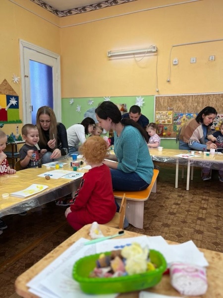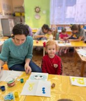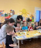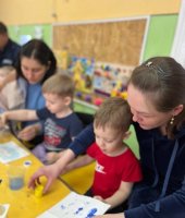Финальное задание в разноцветной стране стало: «Открытка для папы». Малыши под чутким руководством взрослых успешно его выполнили.