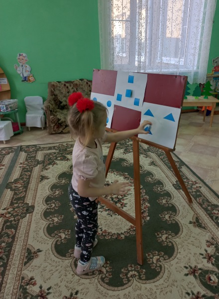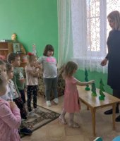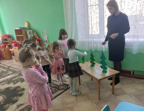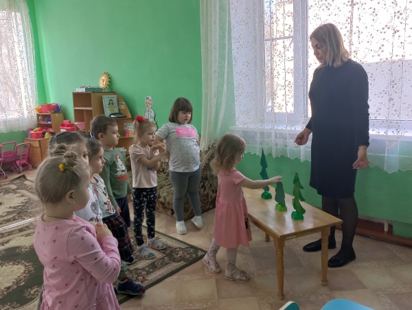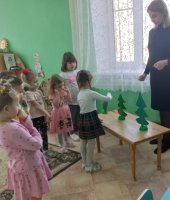 В процессе занятия – путешествия были использованы разнообразные методы и приёмы привлечения внимания детей: дидактические игры и упражнения «Найди свое место», «Засели жильцов», «Как растут ёлочки» и др. направленные на формирование двигательных, практических навыков и умений, и их совершенствование. А в ходе работы с раздаточным материалом дети внимательно выполняли все указания и успешно справлялись.