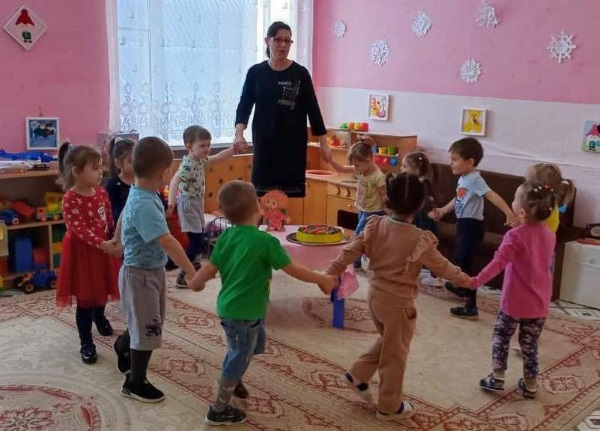 Ну, а какой же День рождения без «Каравая»! Ребята с удовольствием играли с Кузей в игры «Каравай» и «Жмурки».