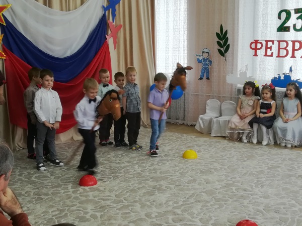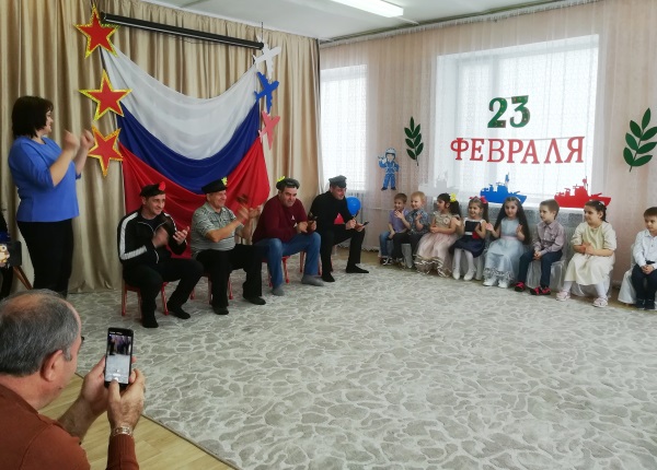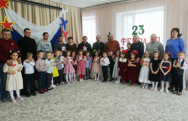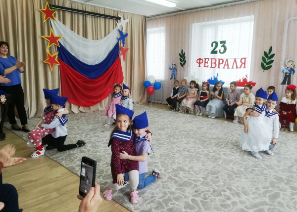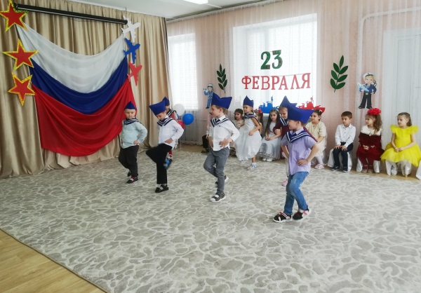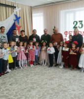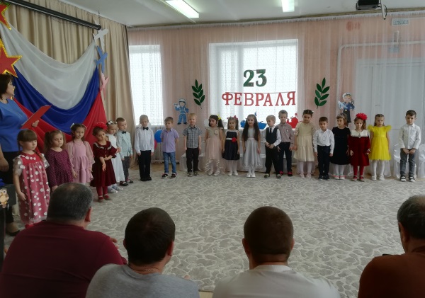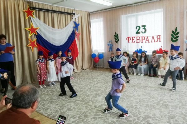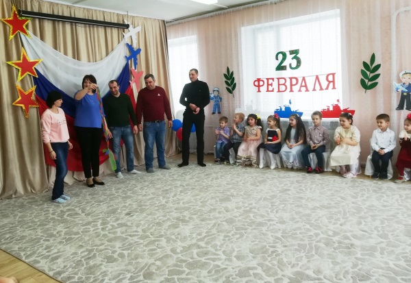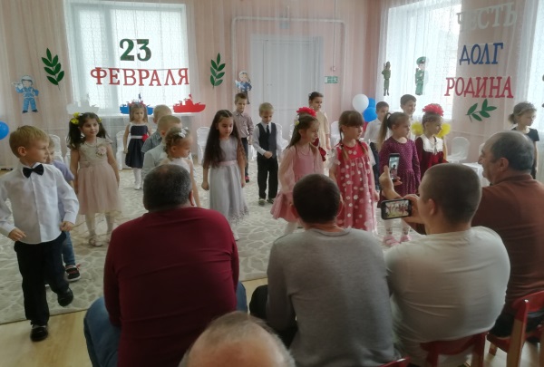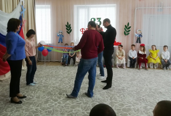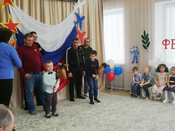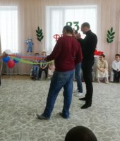 Настроение у детей было торжественным. Праздник проходил в форме концерта под марш дети зашли в музыкальный зал и исполнили зажигательный флешмоб. Исполнили песню о Родине, о защитниках Отечества, с большой любовью - песню о папе, с выражением читали стихи, исполняли частушки, станцевали весёлый и задорный парный танец «Морячка», который вызвал восхищение и покорил сердца наших гостей на празднике. А между музыкальными номерами дети соревновались с папами и дедушками. В таком конкурсе как «Прокатись на лошадке» дети и родители показали, какие они ловкие, дружные и смекалистые. В конкурсе «Заплети косичку» папы показали свою смекалку и ловкость, а концерт ложкарей, в роли были папы ребят, был самым весёлым и музыкальным номером на празднике. На память о нашей встречи дети подарила своим дорогим и любимым папам и дедушкам открытки, изготовленные своими руками, как это было трогательно и мило.