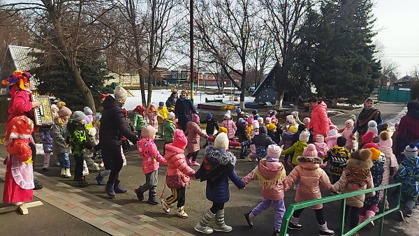 Итогом масленичной недели, стало развлекательное мероприятие «Широкая Масленица». Все участники праздника - взрослые и воспитанники всех возрастных групп, собрались на площадке детского сада. Весёлый скоморох, (эту роль я взяла на себя) устроил веселые масленичные забавы, порадовал детей веселыми шутками.