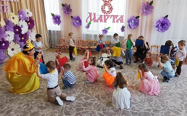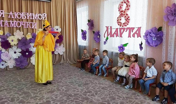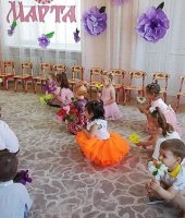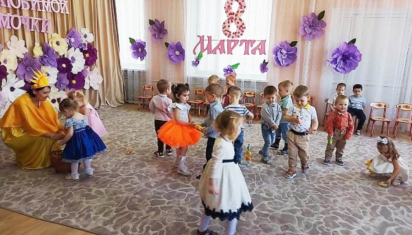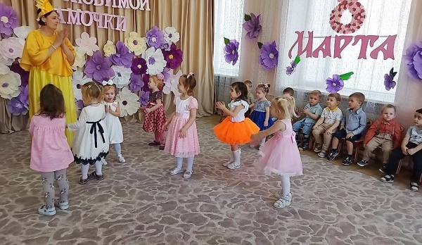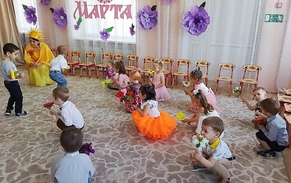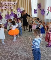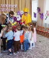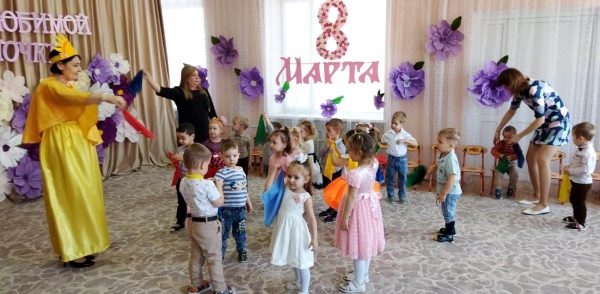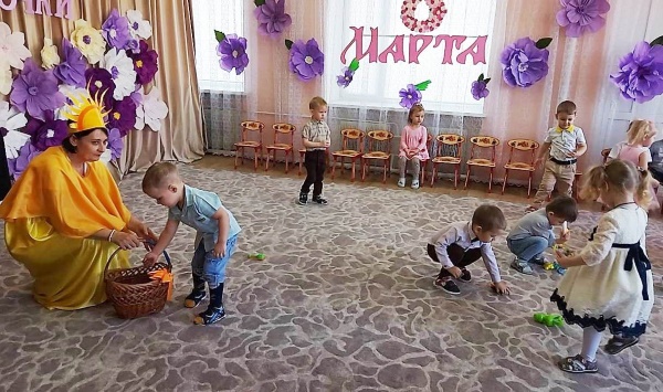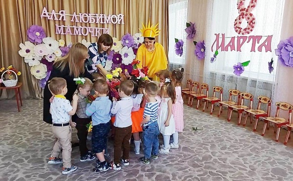 К Международному дню 8 Марта в группе раннего возраста «Ягодки» мы с воспитателем Ткачёвой М.В. провели праздник «Солнечные лучики». Сюрпризным моментом праздника стало «Солнышко» (эту роль я взяла на себя), подарившее ребятам корзину с волшебными лучиками. Малыши исполнили песенки для мам и бабушек. Танцевали танец с цветочками и платочками. В конкурсах «Собери клубочки», «Наведём порядок» проявили ловкость и сноровку.