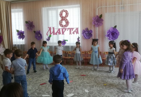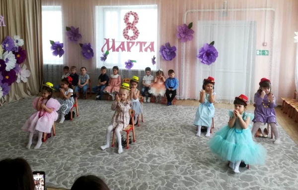 Мероприятие, посвященное этому первому весеннему празднику в средней группе «Капелька» прошло в торжественной и радостной атмосфере. Ребята с большим удовольствием участвовали в таком прелестном празднике: они очень трогательно и мило читали стихи о маме и бабушке, очень искренне, непосредственно и с любовью пели песни «Маму очень я люблю», «Самая любимая мамочка моя», «Бабушка испеки оладушки», с удовольствием играли в игру «Собери цветок», весело танцевали задорные танцы «Модницы», «Мы защитники».