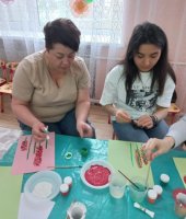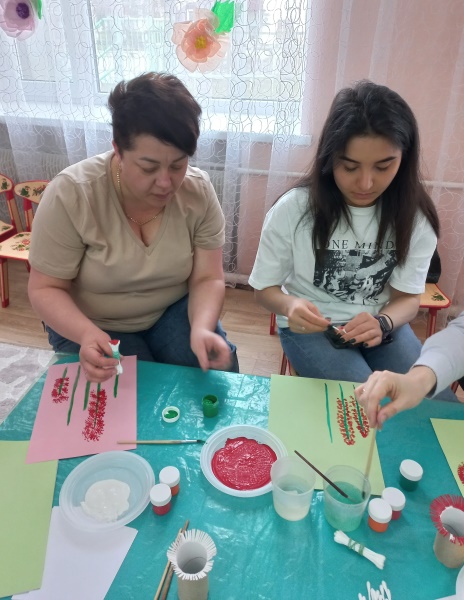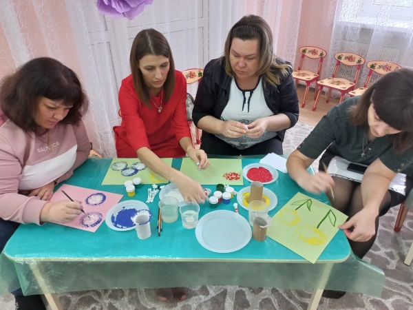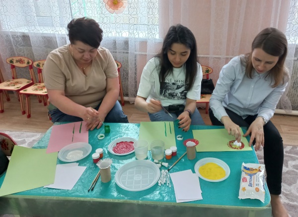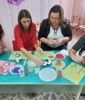 Родители с большим интересом и удовольствием погрузились в атмосферу творчества. У всех получились замечательные работы в необычной технике.