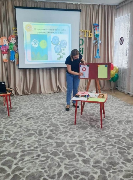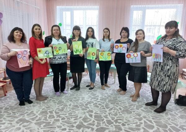 В средней группе «Ромашка» в марте месяце было организованно и проведено родительское собрание в форме мастер – класса по теме: «Художественно-эстетическое развитие ребёнка в изобразительной деятельности через современные педагогические технологии». Я ознакомила родителей, с нетрадиционными техниками рисования, которые использую в работе с детьми. Предложила родителям стать непосредственными участниками мастер-класса и нарисовать «Цветы необычной красоты», используя нетрадиционные способы рисования: оттиск смятой бумагой, рисование бумажной втулкой, рисование ватными палочками.