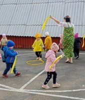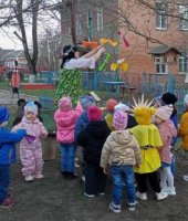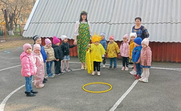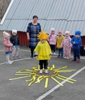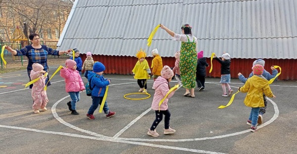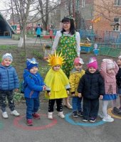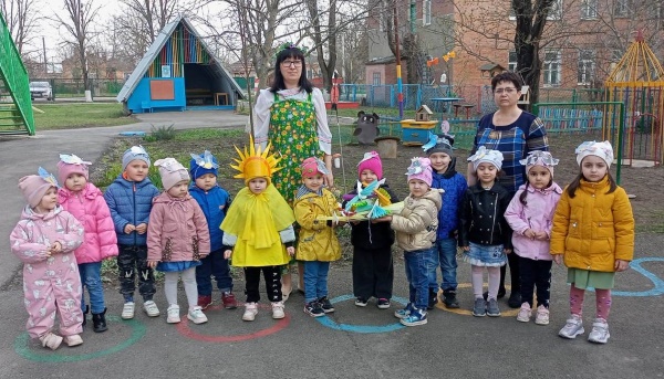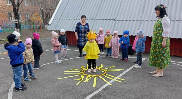 22 марта в нашей группе впервые отмечалось празднование дня весеннего равноденствия, в народе называемого «Сороки». Музыкальный руководитель (Ермак Л.В.) предложила ребятам отправиться в весенний лес. На полянке детей встретило Солнышко (в роли воспитанница Шевченко Маргарита) и Весна (роль я взяла на себя). Солнышко в подвижной игре дарит малышам свои лучики. Весна много интересного рассказала о перелётных птицах. Одев шапочки птиц, ребята поиграли в подвижную игру «Птичка и ветерок».
