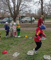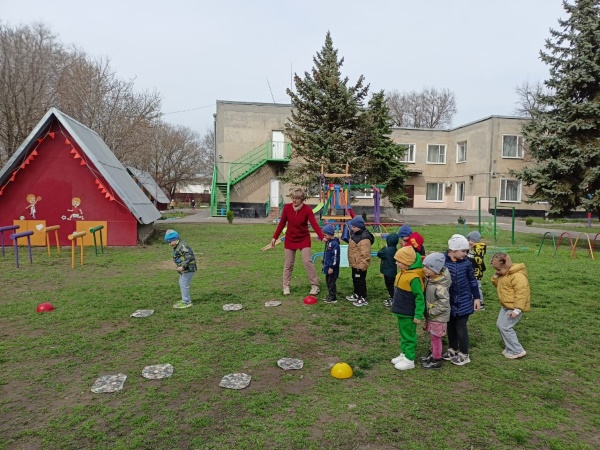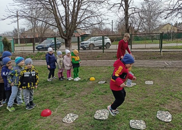Дети получили удовольствие от эстафеты «Верхом на лошадке», заряд бодрости принесла эстафета «Перепрыгни через ручеек», а как ловко дети передавали мяч из рук в руки в эстафете «Передай мяч». С большим желанием ребята перепрыгивали с кочки на кочку, чтобы не промочить ноги в лужице.