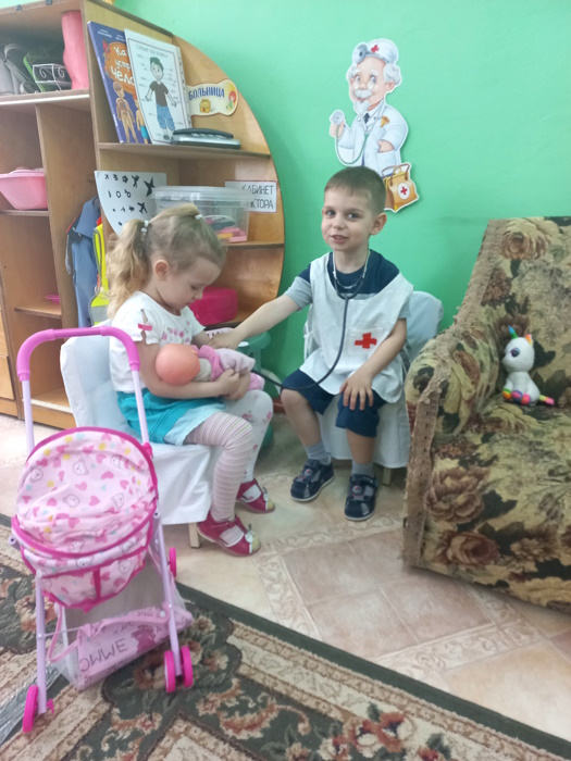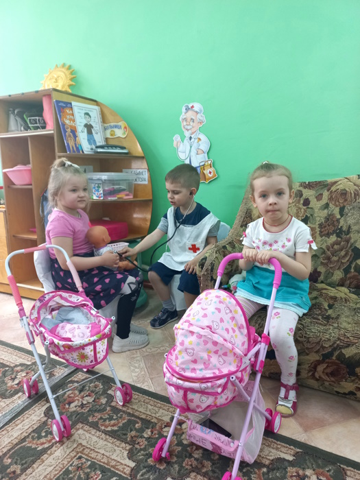 А ещё в гости к детям приходил Мишка, он очень любит сладости, но ребята рассказали ему, что сладостей много кушать нельзя, они портят зубки. Для закрепления знаний о пользе продуктов питания поиграли с детьми в игры «Полезные и вредные продукты», в сюжетно-ролевую игру «На приеме у врача».