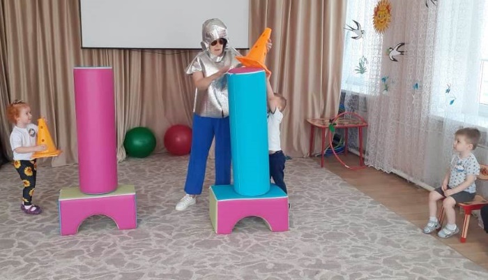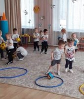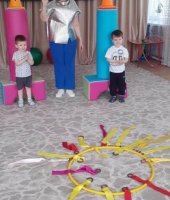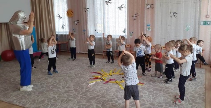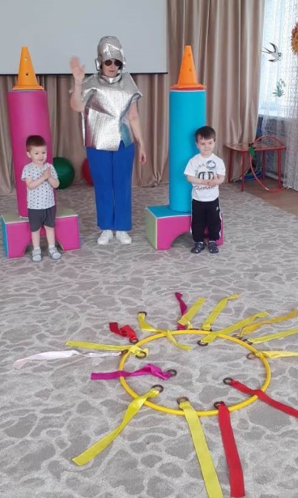 В группе раннего возраста «Ягодки» прошло развлечение «Путешествие на необычную планету». Это развлечение было приурочено к Дню космонавтики. На необычной планете дошколята познакомились с Марсианином (роль я взяла на себя). Он предложил малышам пройти несколько испытаний. В космических испытаниях: «Собери метеориты», «Займи свою ракету», в ходе выполнения это и задания малыши проявили ловкость, сообразительность. В состязании ребята быстро справились с поставленными задачами. Затем дошколята помогли Марсианину построить ракеты. Малыши быстро перемещались по планете на марсолетах и затем перевезли всех космонавтов на космодром. В конце было задание «Лучики для солнышка» и с этим заданиями малыши справились на отлично.
